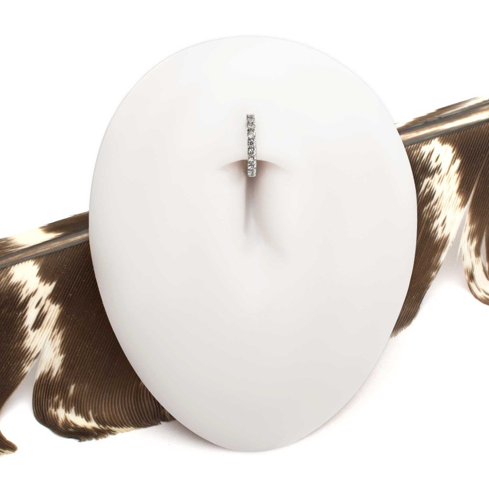 14g Titanium Oval Shape with CNC Set Full Clear CZ Hinged Segment Clicker (for Navel Piercing). Manufactured from High Polish Implant Grade Titanium (Ti-6AL-4V-ELI ASTM F136).
