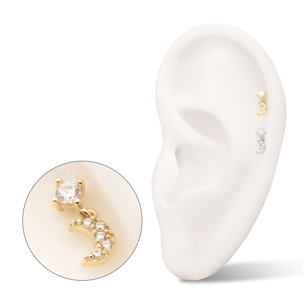 ? Add a celestial touch to your piercings witH₂O₂r new moon dangle threadless tops.