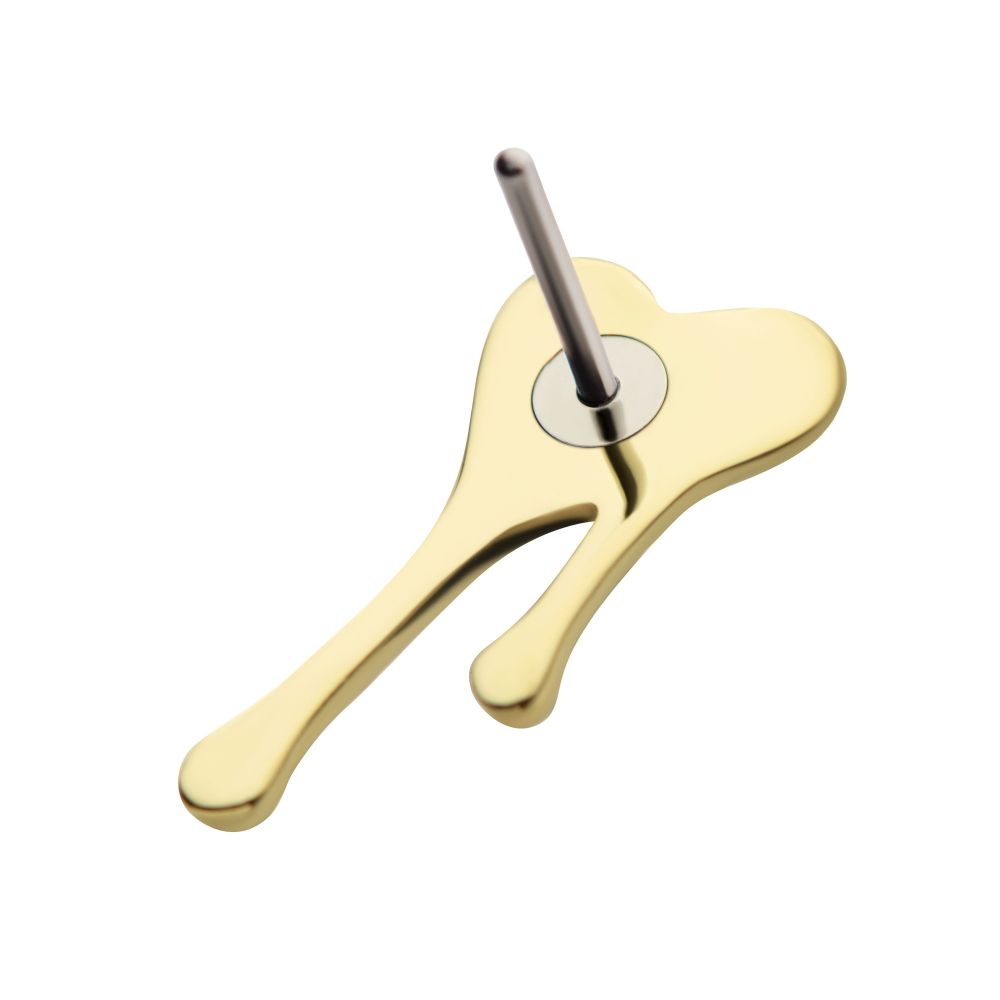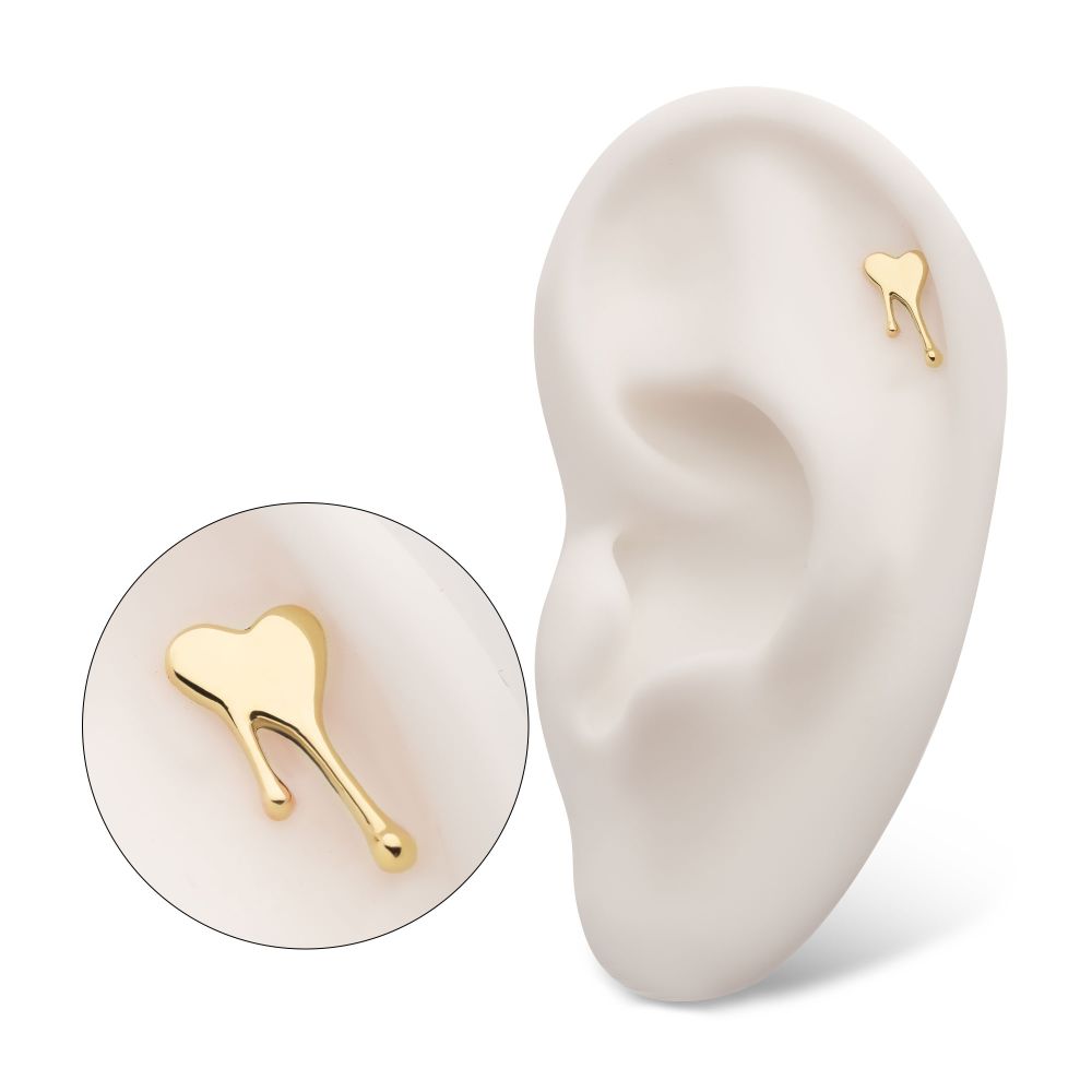 14Kt Gold Threadless Bleeding Heart Top. Made of solid 14kt nickel-free Gold with durable 316LVM ASTM F-138 Implant Grade Steel Pin designed to be practical and easy to use. Fits all sizes of pins and bases in our threadless body jewelry line. Pin Size: 0.45mm x 4.7mm.