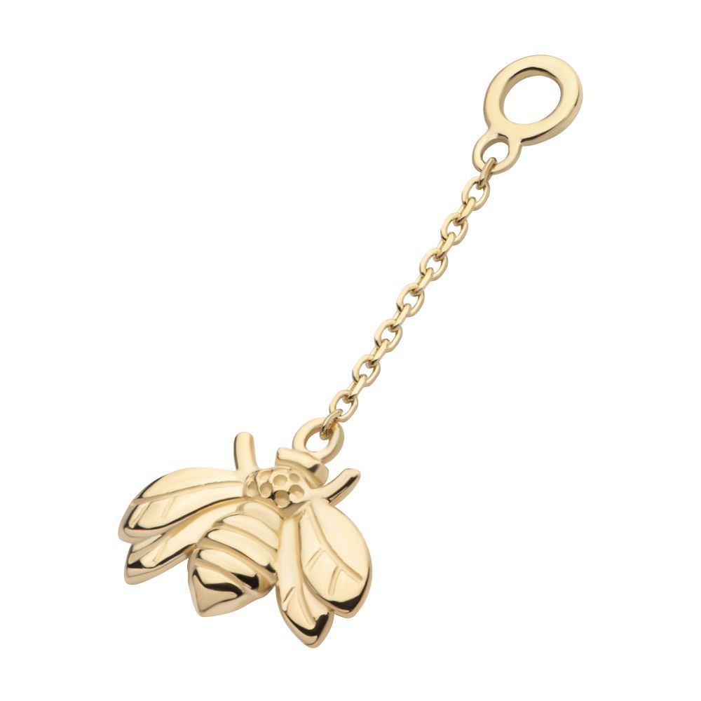 14Kt Yellow Gold Bee Dangle Charm with 10mm Chain.