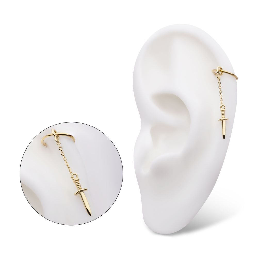 14Kt Yellow Gold Dagger Dangle Charm with 10mm Chain.