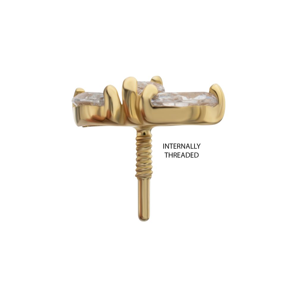 14Kt Yellow Gold M0.8 Internally Threaded Prong Set Triple Cluster Marquise Fan Top