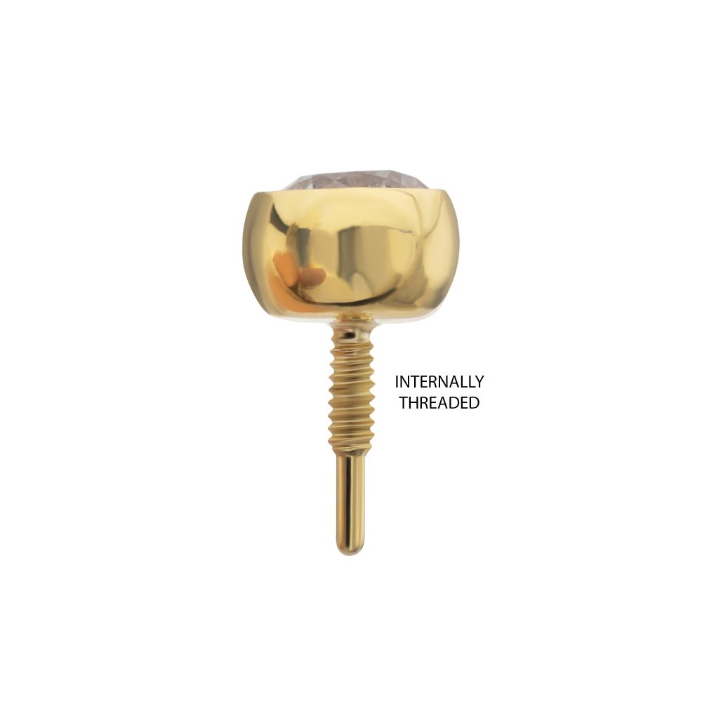 14Kt Yellow Gold M0.8 Internally Threaded Round Back Bezel Set Gem Top