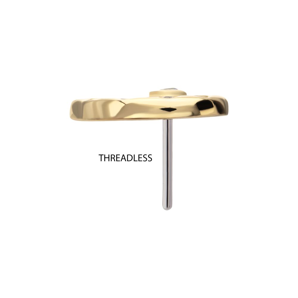 14Kt Yellow Gold Threadless Aqua CZ Gem Snaill Top. Made of solid 14kt nickel-free Gold with durable 316LVM ASTM F-138 Implant Grade Steel Pin designed to be practical and easy to use. Fits all sizes of pins and bases in our threadless body jewelry line. Pin Size: 0.45mm x 4.7mm.