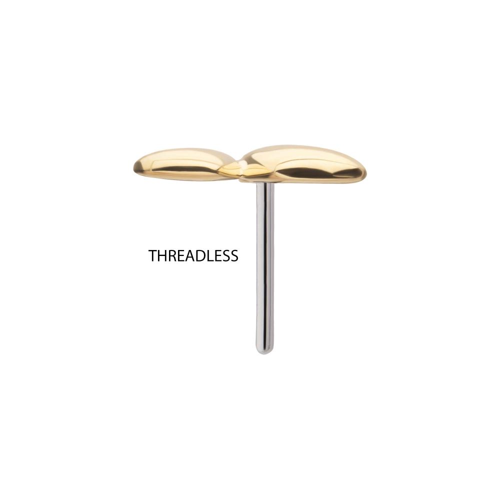 14Kt Yellow Gold Threadless Double Puffy Heart Top. Made of solid 14kt nickel-free Gold with durable 316LVM ASTM F-138 Implant Grade Steel Pin designed to be practical and easy to use. Fits all sizes of pins and bases in our threadless body jewelry line. Pin Size: 0.45mm x 4.7mm.