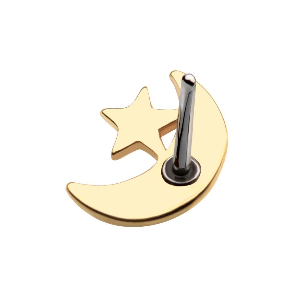 14kt Yellow Gold Threadless with Crescent Moon & Star Top