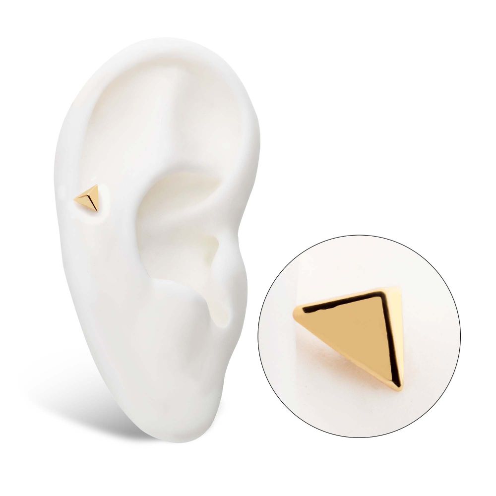 14Kt Yellow Gold Threadless with Short Pyramid Top is made of solid 14kt nickel-free Gold with durable 316LVM ASTM F-138 Implant Grade Steel Pin designed to be practical and easy to use. Fits all sizes of pins and bases in our threadless body jewelry line. Pin Size: 0.45mm x 4.7mm.