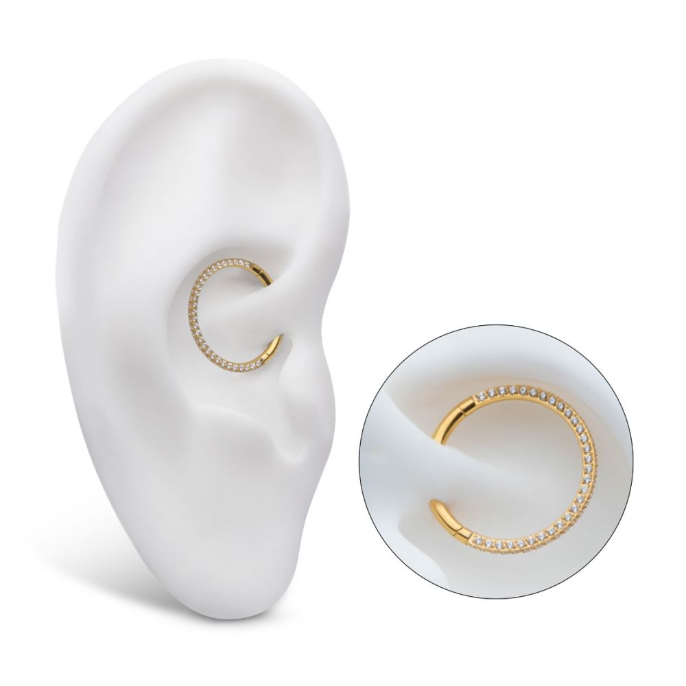 24Kt Gold PVD Titanium 3-Row Pave Set 0.8mm Round Gem Hinged Segment Clicker