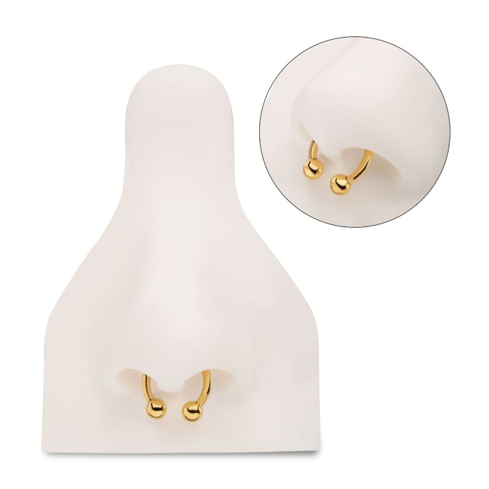 Our internally threaded circular barbells are an essential tool in any piercer's box - and a versatile piece of jewelry that can be worn in many different piercings. Choose from a selection of gauges, widths, and either a 3mm or 4mm ball size. The gold color, once deposited, stays bonded to the titanium, and does not flake or wear off.