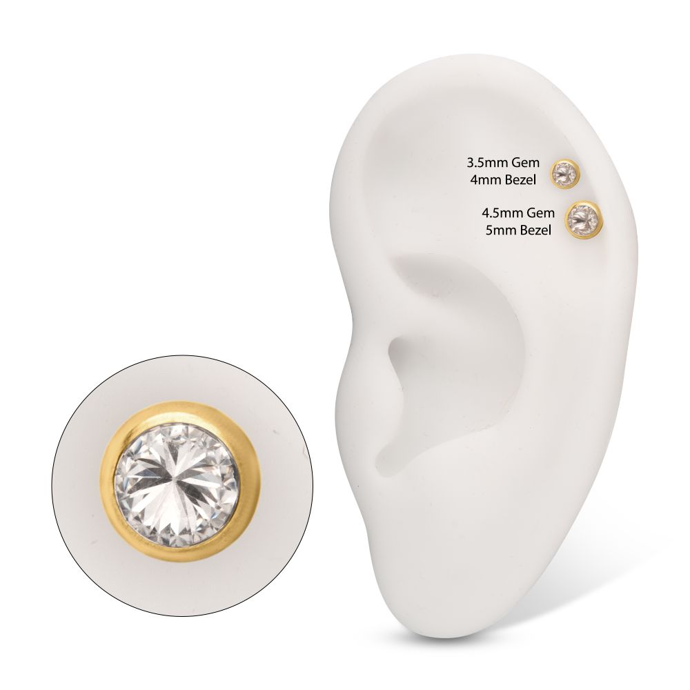 24Kt Gold PVD Titanium Internally Threaded Low Profile Bezel Set Gem Tops