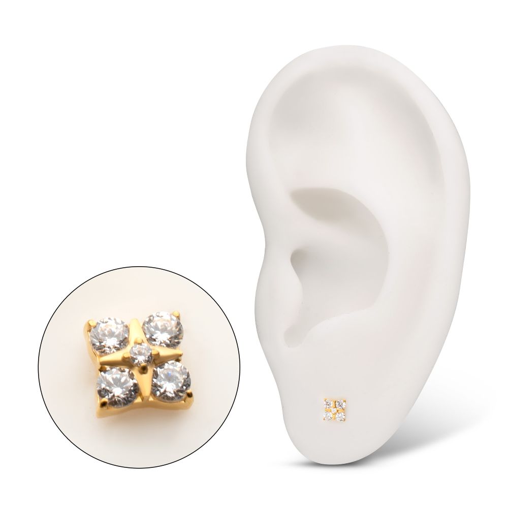 24Kt Gold PVD Titanium Threadless Square Shape Top with Prong Set 5-Gem Cluster