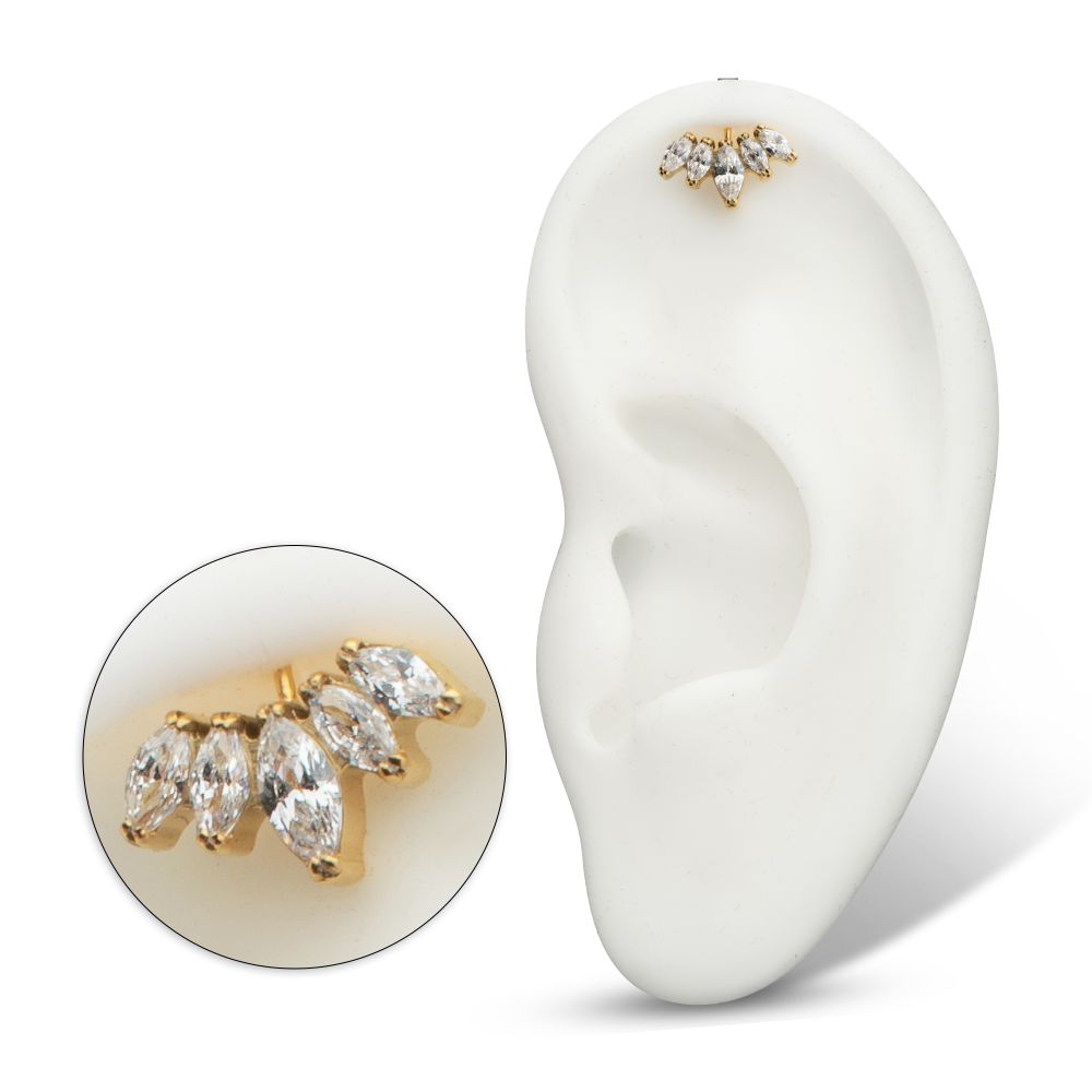 24Kt Gold PVD Titanium Threadless Vertical Helix V-Prong Marquise Fan 5-Cluster Top