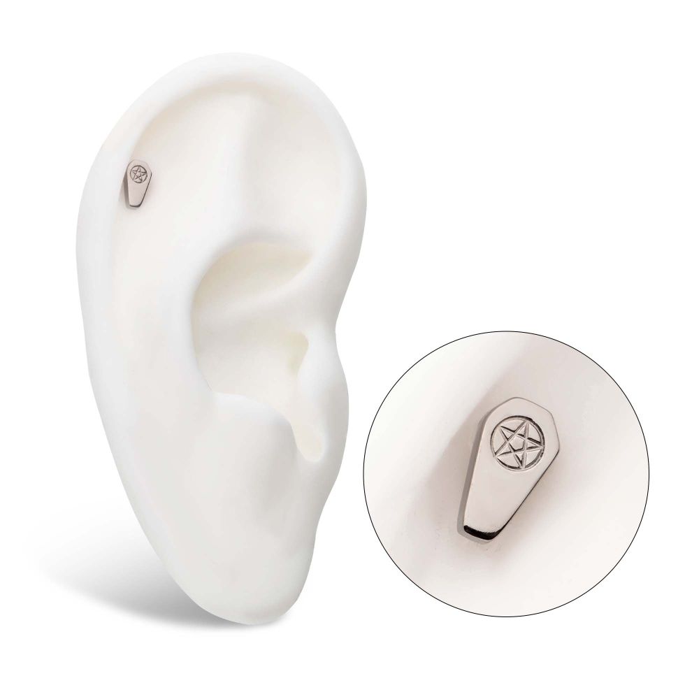 Titanium Internally Threaded Coffin with Engraved Pentagram Top. Manufactured from High Polish Implant Grade Titanium (Ti-6AL-4V-ELI ASTM F136).