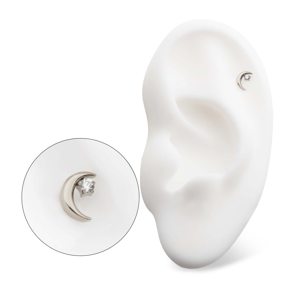 Titanium Internally Threaded Crescent Moon with CZ/Opal Top. Manufactured from High Polish Implant Grade Titanium (Ti-6AL-4V-ELI ASTM F136).
