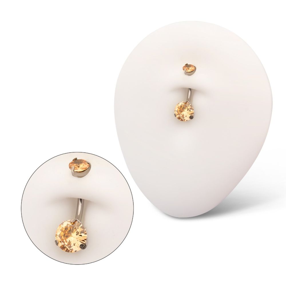 Perfectly designed for navel anatomy, our internally threaded double-ended titanium navel curve is prong set for an upscale look and provides a lot of sparkle from the Swarovski crystals. Available in a selection of colors, and a fabulous choice for a new or refreshed navel piercing.