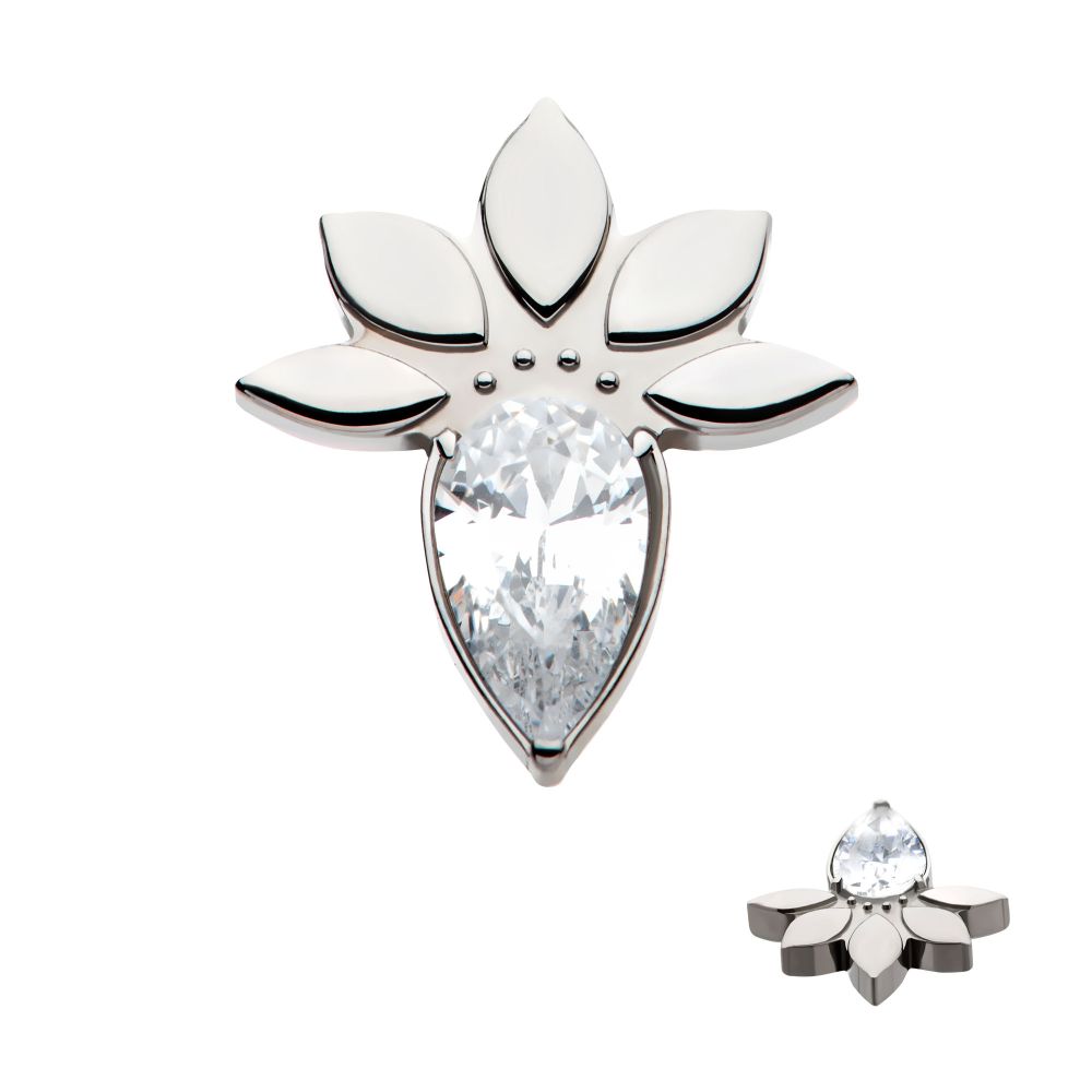 Titanium Internally Threaded Marquise Cluster Fan Shape with Teardrop CZ Top. Manufactured from High Polish Implant Grade Titanium (Ti-6AL-4V-ELI ASTM F136).