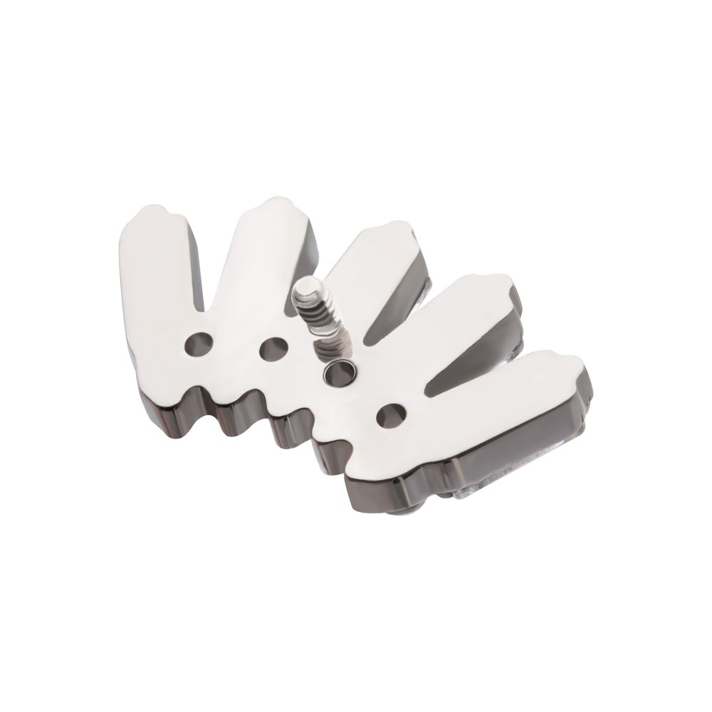 Titanium Internally Threaded Prong Set Baguette & Round Gem Fan Shape 5-Cluster Top. Manufactured from High Polish Implant Grade Titanium (Ti-6AL-4V-ELI ASTM F136).