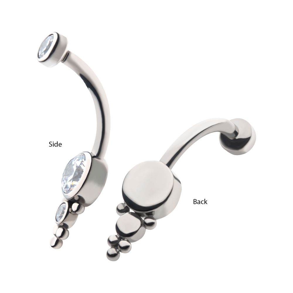 Titanium Internally Threaded with Tri Bead Bezel Set CZ Cluster Navel Curve