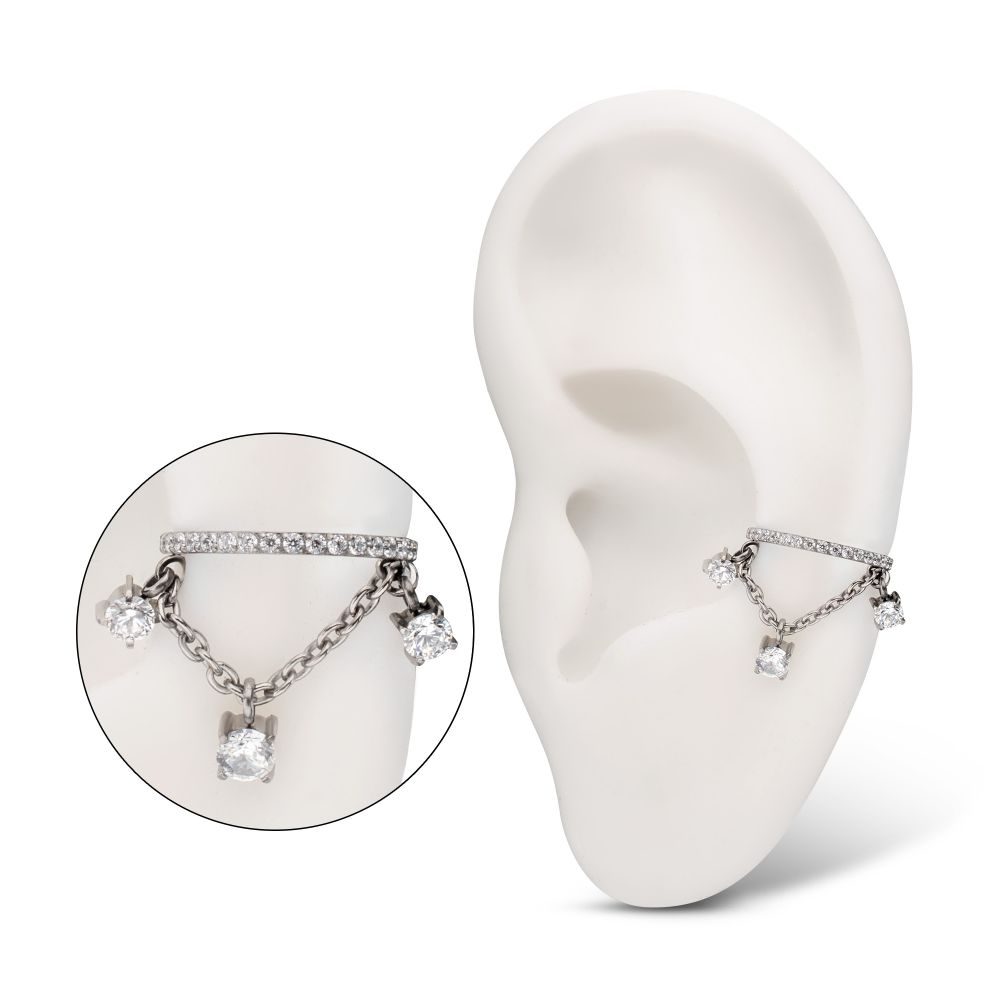 ? Crafted for elegance and versatility, these Titanium Chain Dangle Clickers are designed to gracefully drape across helix, conch, and lobe piercings, creating a cascading visual effect.