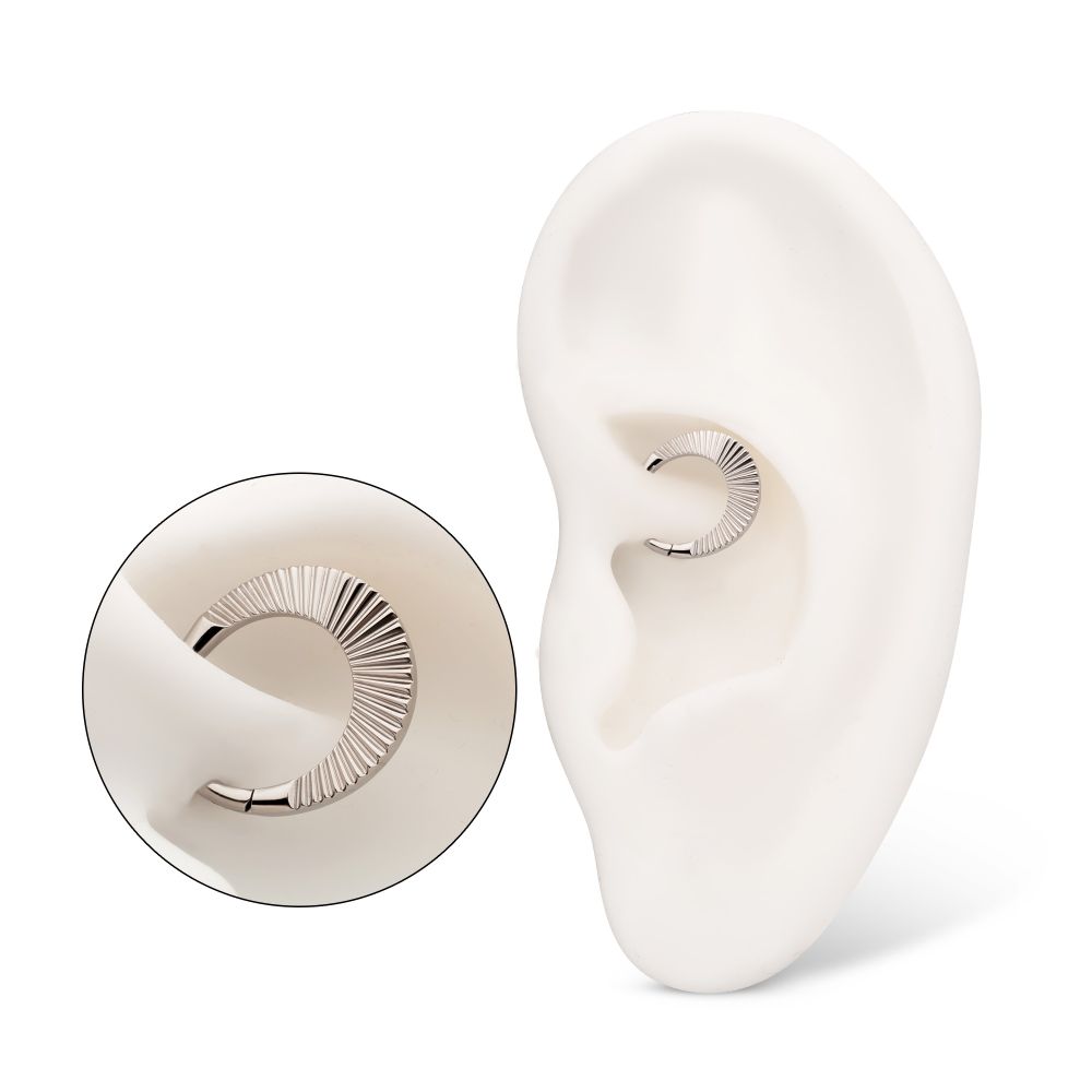 ? These designs are engineered to balance function, comfort, and visual appeal. The corrugated ridges are designed to refract light, creating shimmer and depth that enhances the overall look. The hinged closure allows for efficient installs and client ease of wear, while the corrugated detailing provides a premium look that distinguishes these hoops from smooth designs. With multiple profiles and finish options, the Radiant Corrugated Hinged Hoop Clickers offer reliable versatility and elevated design.