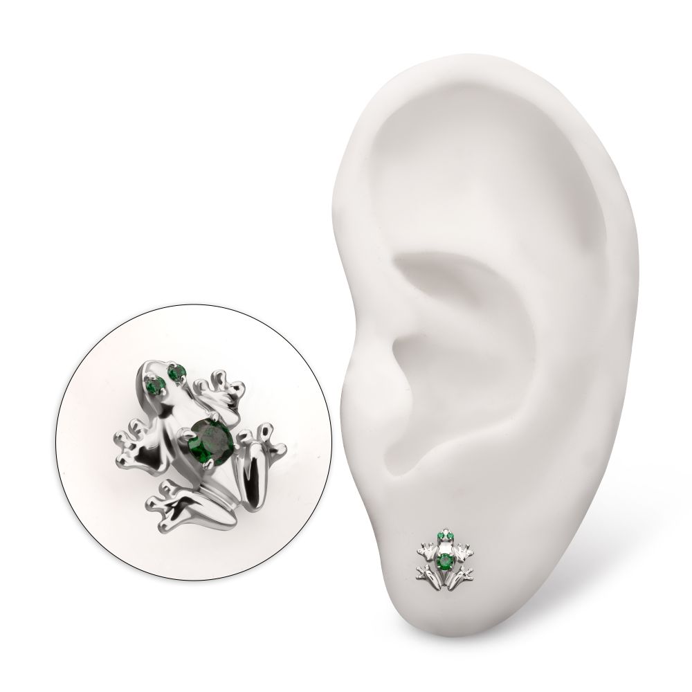 Titanium Threadless Frog Top with Prong Set CZ Gem