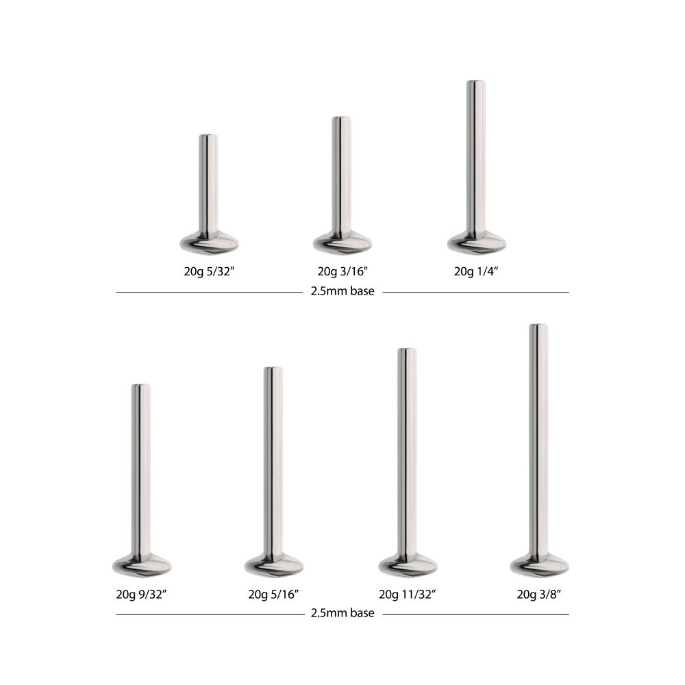 Titanium Threadless High Polish Mirror Finish 2.5mm Dome Labret Base is manufactured from High Polish Implant Grade Titanium (Ti-6AL-4V-ELI ASTM F136). Any threadless top in the line can be used in any of the Invictus threadless labrets. Pin Gauge: 25g.
